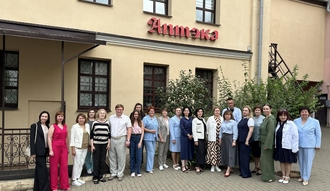С самого начала гости посетили обзорную экскурсию по библиотеке, после чего их ожидала вторая экскурсия, которую им провела Юлия Корнейчук. Юлия представила увлекательный обзор выставки «Аптечный край», где рассказала о развитии аптечного дела в Пермском крае с акцентом на аптеки Кунгура, включая юбилейную аптеку.